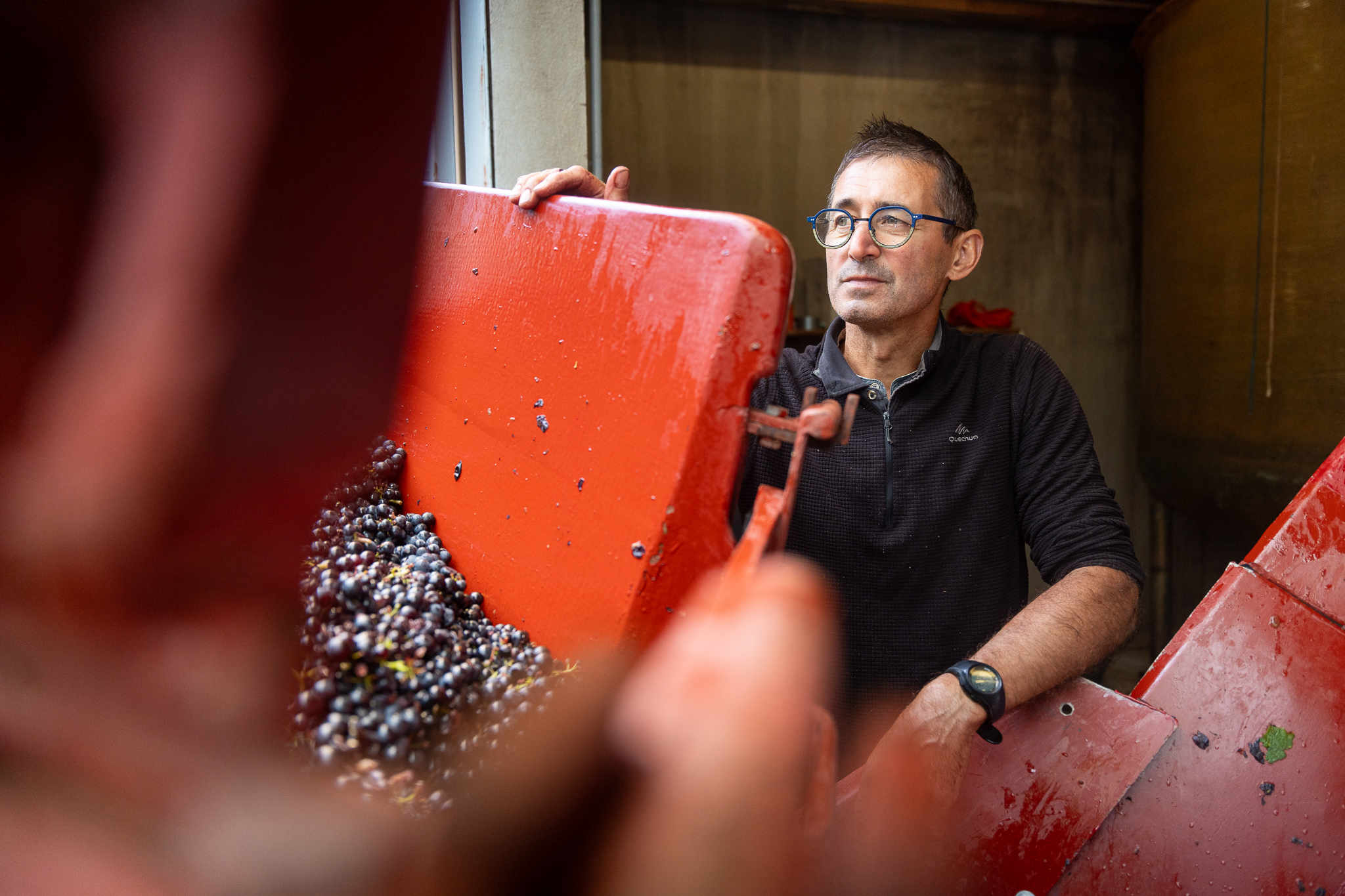 Laurent Guillet privilégie la vinification en grappes entières, une méthode traditionnelle Beaujolaise.